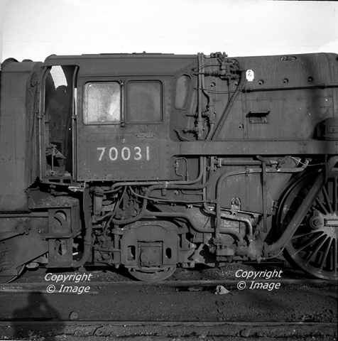 BR 7MT (Britannia class) 4-6-2 70031 cabside view at Willesden MPD 1964